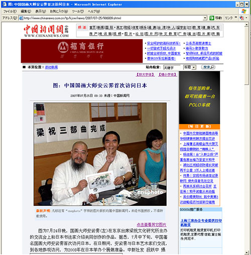 '07.7.25/中国新聞網に中国・国画大師、安雲霽先生と私の共同作品が紹介されました。